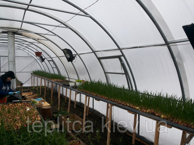 До початку плодоношення рослин огірка та томата основною овочевою продукцією з теплиць в зимовий час є зелений лук. Для вигонки зеленого цибулі чи цибулі на перо використовують зазвичай ріпчасту цибулю, але іноді і багаторічний цибуля - батун.