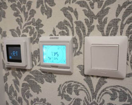 Програмовані термостати. Програмований прилад дає можливість встановити параметри, щоб підлога нагрівалася до вашого ранкового пробудження або до приходу додому з роботи. Опинившись удома, ви будете раді комфортному температурному режиму. Такий прилад дозволяє суттєво економити електроенергію. Пристрій має екран та кнопки керування, що дозволяє легко використовувати прилад.