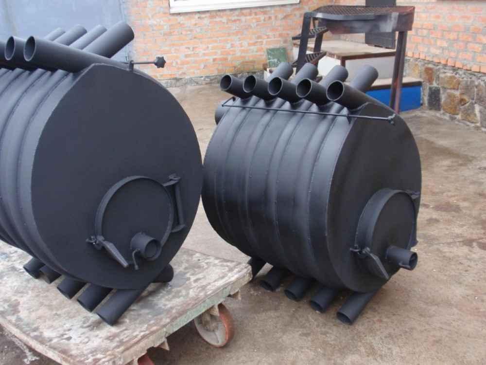 Компактні і великі моделі відрізняються циліндричним корпусом, для обігріву великогабаритних приміщень краще вибрати агрегат у формі краплі. Труби розташовані в корпусі виступають за його межі лише на третину, і це створює кращі умови для тепловіддачі при експлуатації печі:
