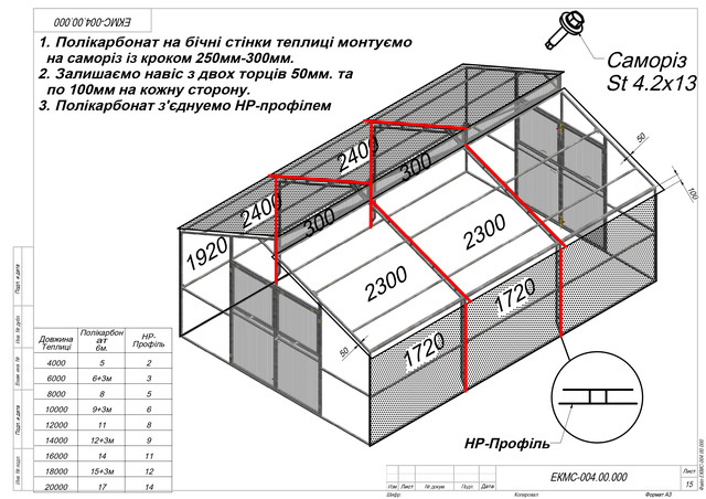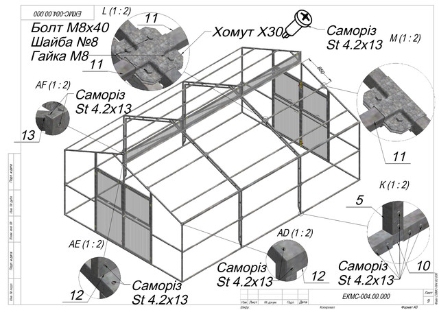 Для збірки підготовлена зручна інструкція, де дуже детально показаний процес складання теплиці: